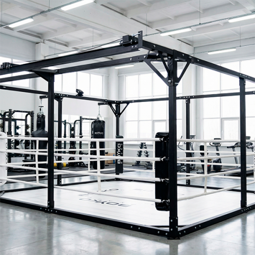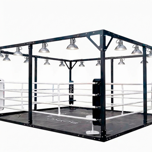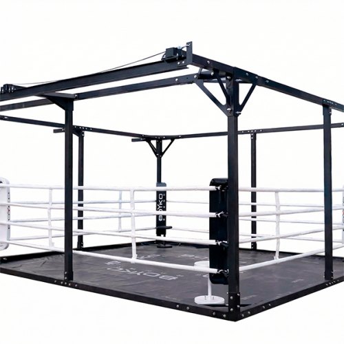 Боксерский ринг напольный в кубе 6,0х6,0м (канаты 5,0х5,0м.) с перекатной системой под боксерские груши.