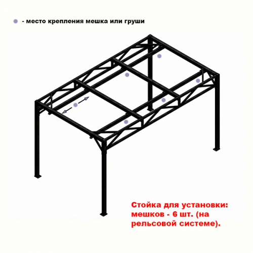 Стойка для боксерских мешков профессиональная №5 (на 6 мешков (на рельсовой системе)) (Ш:Д:В): 3,0:5,0:2,7 м.